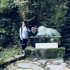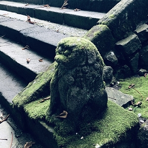 高住神社を出て正面登山口の銅の鳥居に向かう途中、林の中に若い鹿を見つけました。動かなかったら見つけられないような迷彩柄の体で、シバラクこちらを見つめていましたが、奥の方に跳んで行ってしまいました。